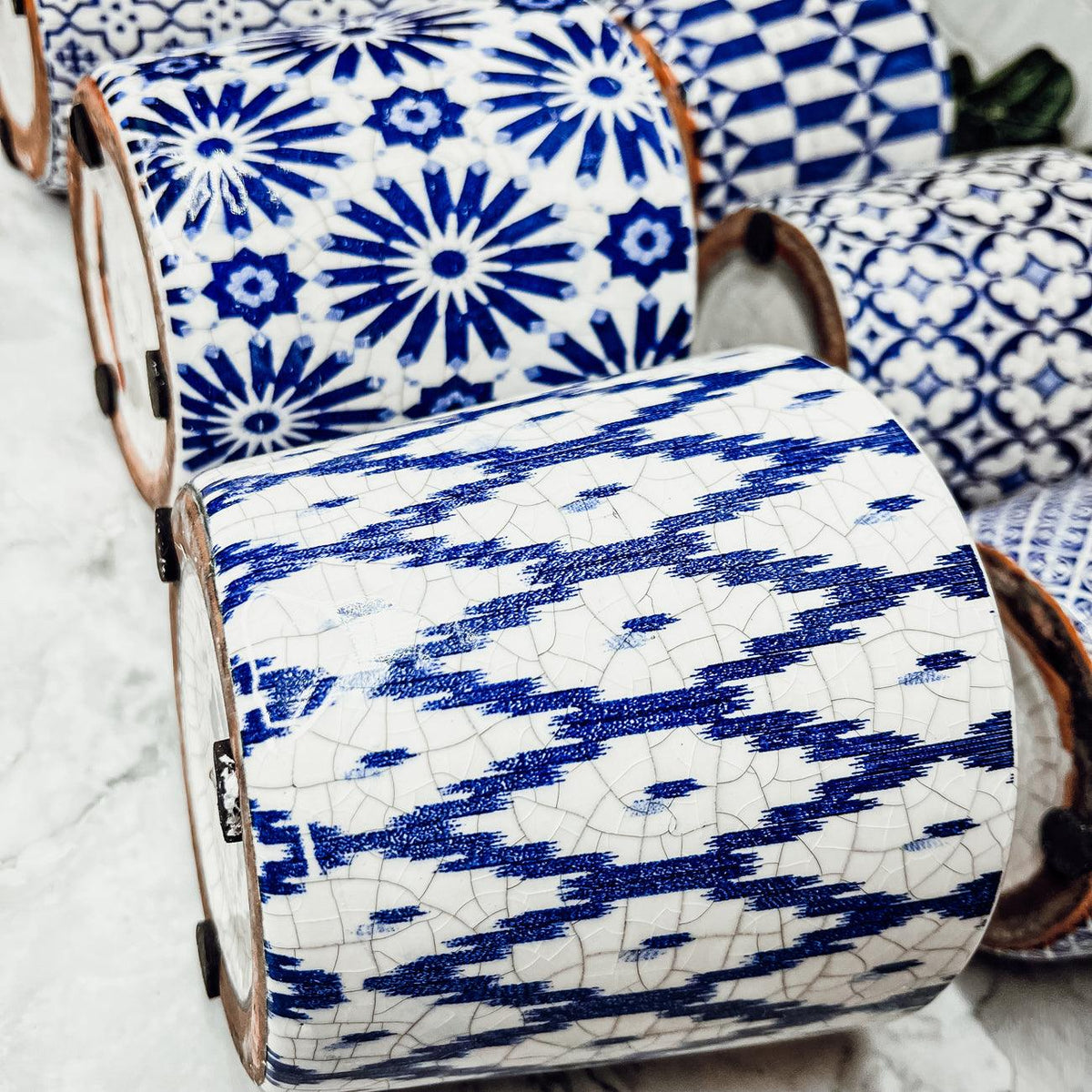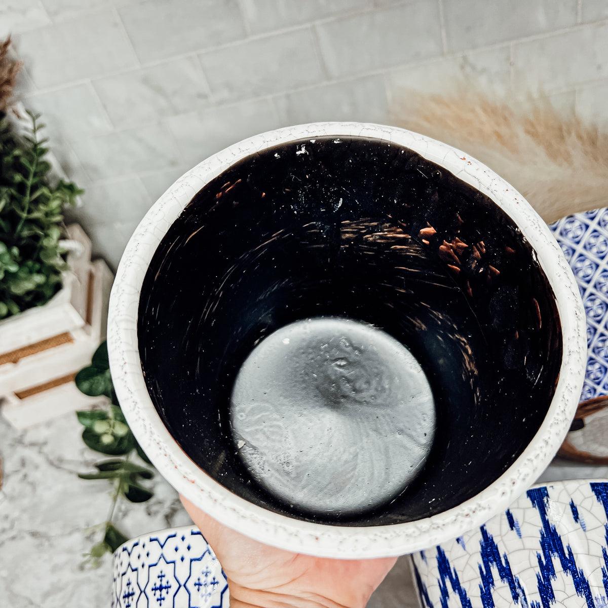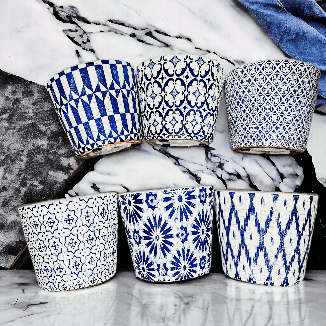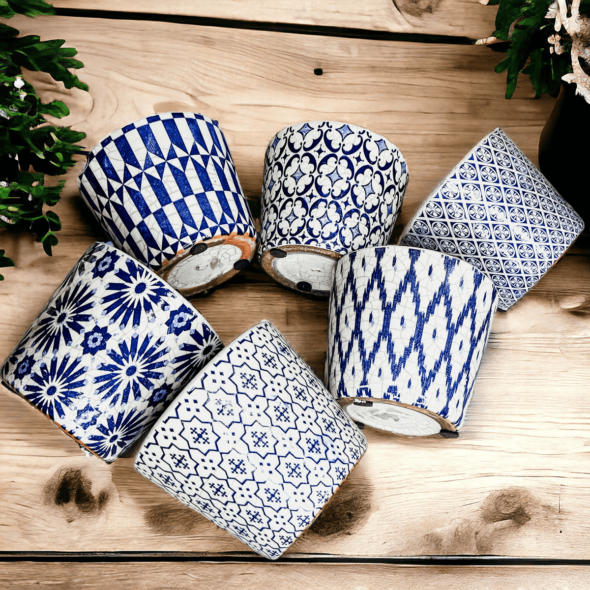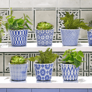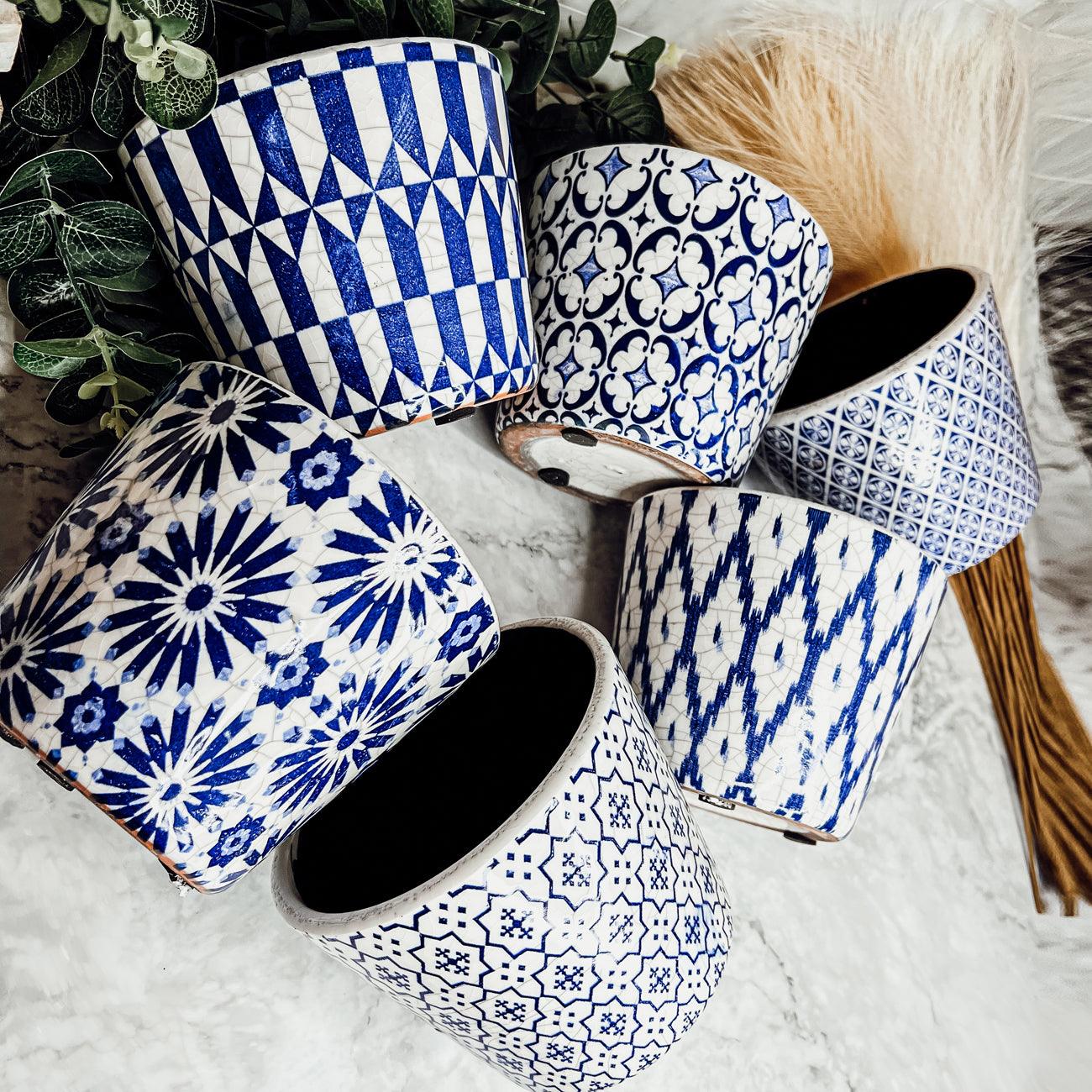 Rustic Patterned Flower Pots were inspired by traditional vintage floor tiles still found today in old village houses and apartments all across Spain and Italy.